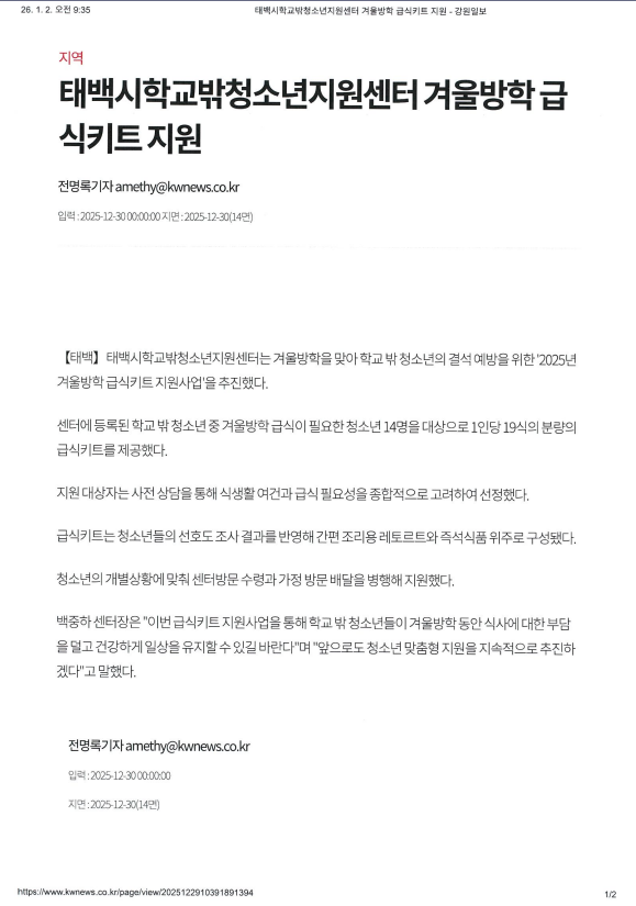 태백시 청소년들을 위한 괜찮지 않아도 괜찮은 공간