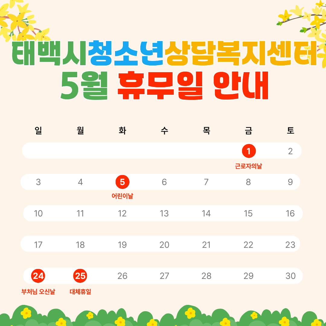 공지사항 View More 2026.04.16 (안내) 4월 시루네상담소 안내 2026.04.16 (안내) 태백시청소년상담복지센터 5월 휴관 안내 2026.04.10 (안내)성매매 피해 청소년 지원시설 새날을 여는 오늘 2026.03.26 2026년 3월 시루네상담소 안내 2026.03.05 강원특별자치도청소년상담복지센터 보호자 교육